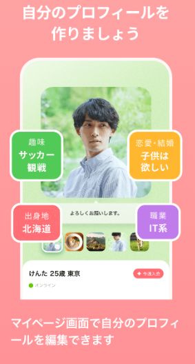 外見より価値観や相性を重視するユーザー設計。ゲーム感覚で終わりにくく、関係構築を目的とした利用者の比率が高い(サービス設計思想に基づく傾向)。真剣度の高い出会いが期待できる。