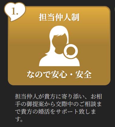 本人確認書類の確認や、悪質ユーザーの取り締まりなどをして安全面を強化しています。専任スタッフが理想の相手との出会いをサポートするのも特徴です。