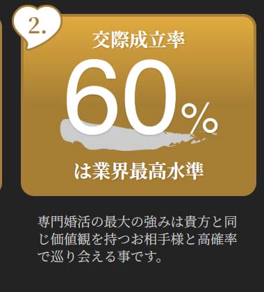 セレブ婚は高収入・社会的に安定した男性を中心に構成された結婚相談所です。一定の条件を満たした会員のみが登録しているため、最初から結婚を前提とした質の高い出会いが期待できます。